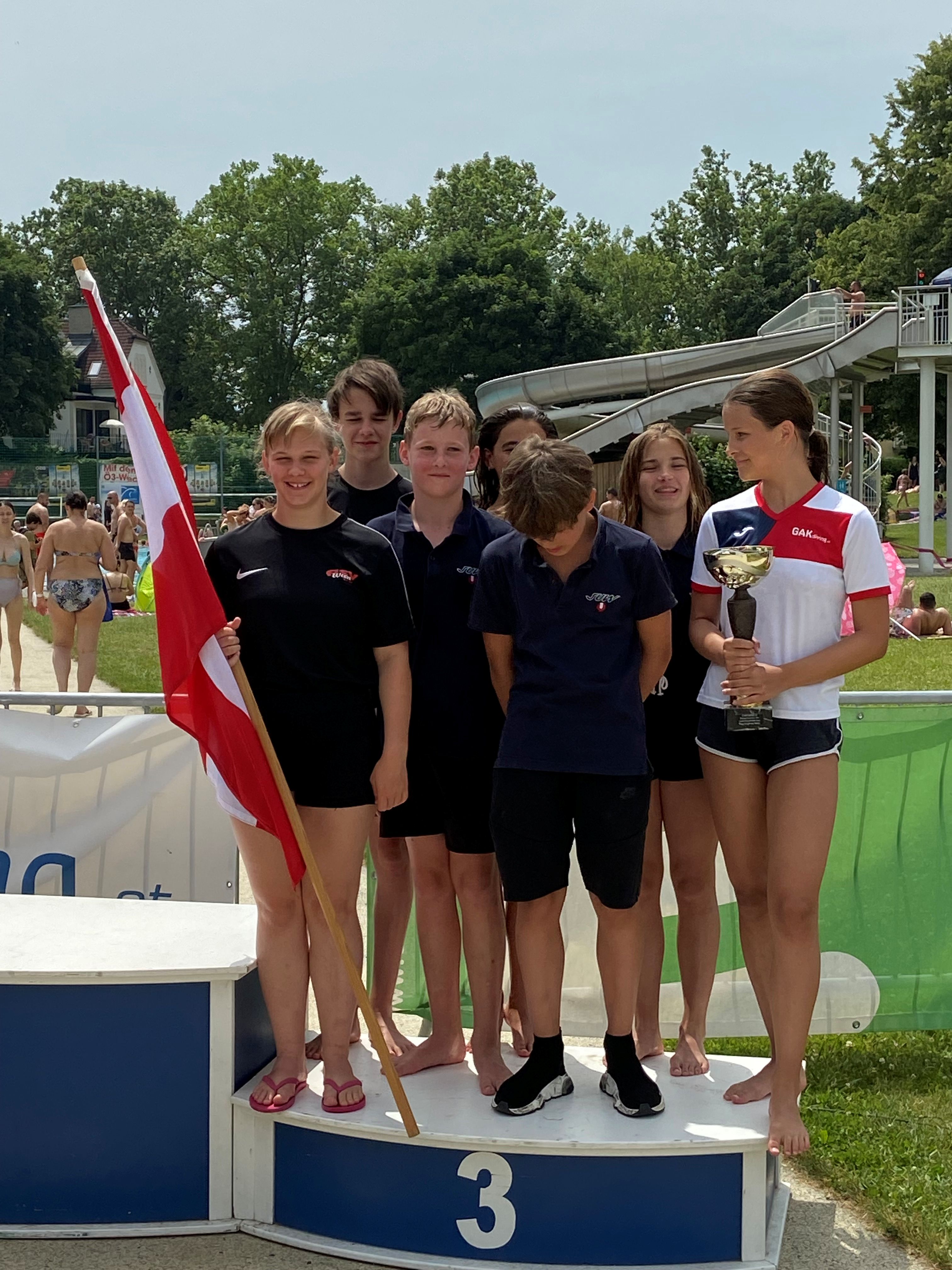 Von 17-20.Juni fand das International Diving Meet (IDM) in Graz statt. Zwischen 6 Nationen konnte sich die Österreichische Mannschaft gut behaupten und den 3.Platz erringen. In dem jungen Team waren erfolgreich: Anton Knoll (6S), Moritz Flandorfer (5O), Lena Gramlinger (6S), Leo Rücklinger (3U), Erik Richter und Carlos Gottsauner-Wolf (beide 2U). Lange Wettkämpfe bei großer Hitze haben unsere jungen Springer sehr herausgefordert. Der Vergleich mit anderen Nationen spornt alle zusätzlich zu weiteren Leistung an. Wir freuen uns auf weitere Wettkämpfe mit internationalen Teams.