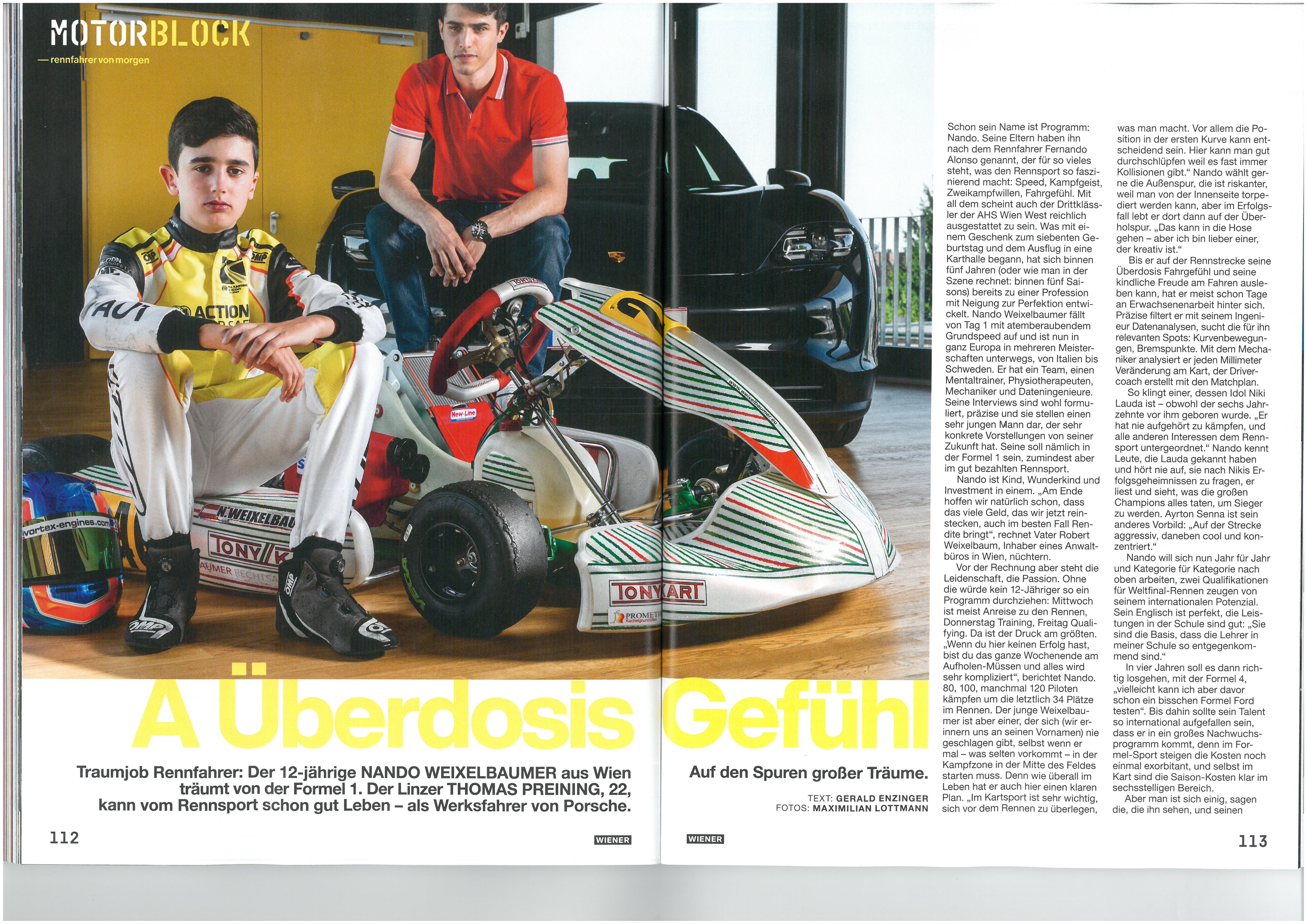 Motorsport Verfasst am 04. September 2021. Bericht im Magazin WIENER über Nando WEIXELBAUMER (4U): ... Quelle: WIENER; Weixelbaumer Zurück Drucken