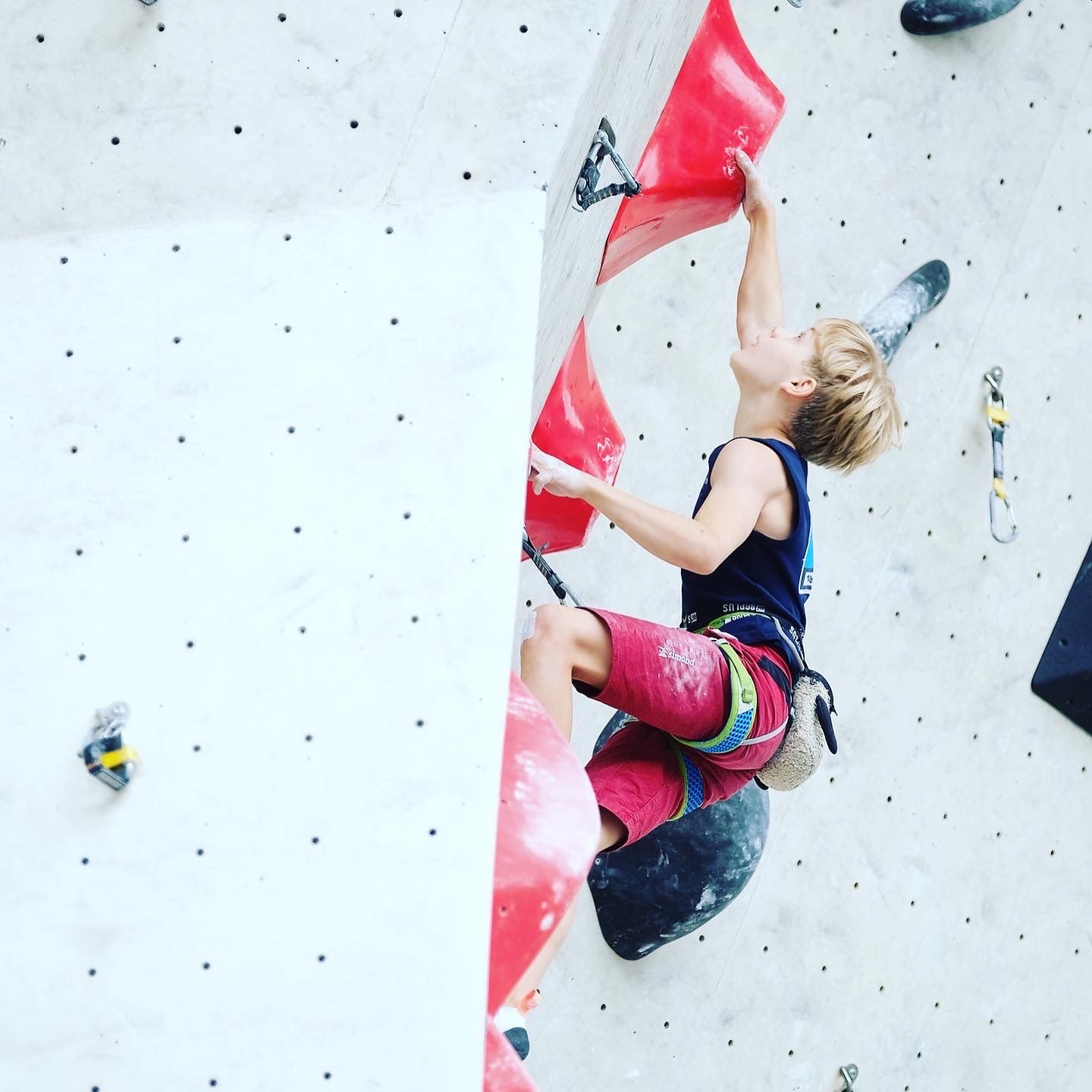 Paul konnte seine ausgezeichnete Form auch in der Leadqualifikation mit einem Top in beiden Routen zeigen und sich damit die Führung sichern, leider bedeutete ein Abrutschen in der Finalroute den undankbaren 4. Platz im Lead.