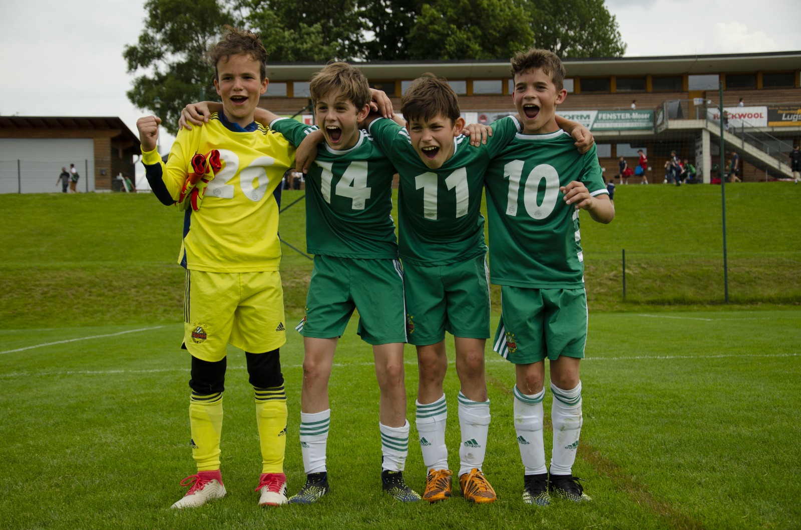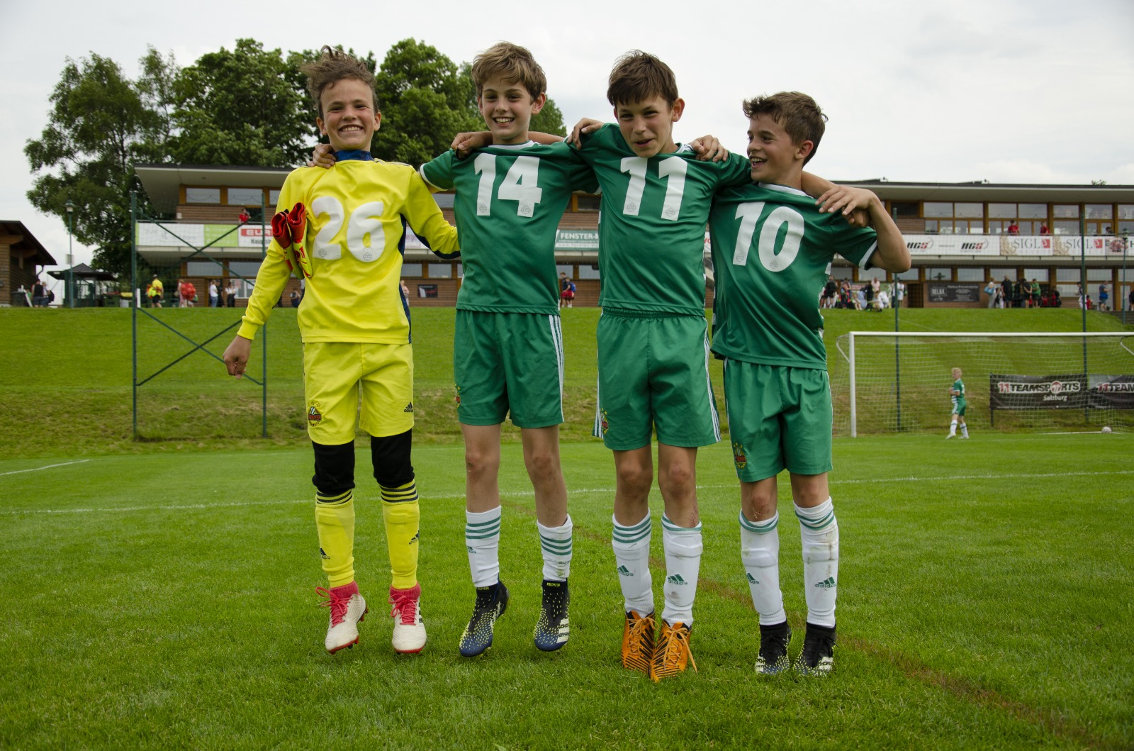 Unsere U11-Rapidler aus der 1U, Dariusz Dolhun, Frederic Sadat-Gauche und Nikola Vasic (Teodor Jovanovic war leider krank und nicht dabei) und unser Tormann Yannis Nigrowics aus der 1A, haben am Sa., 12.06.2021 den 1. Platz beim Leistungsvergleich in Seekirchen / Salzburg gemacht.