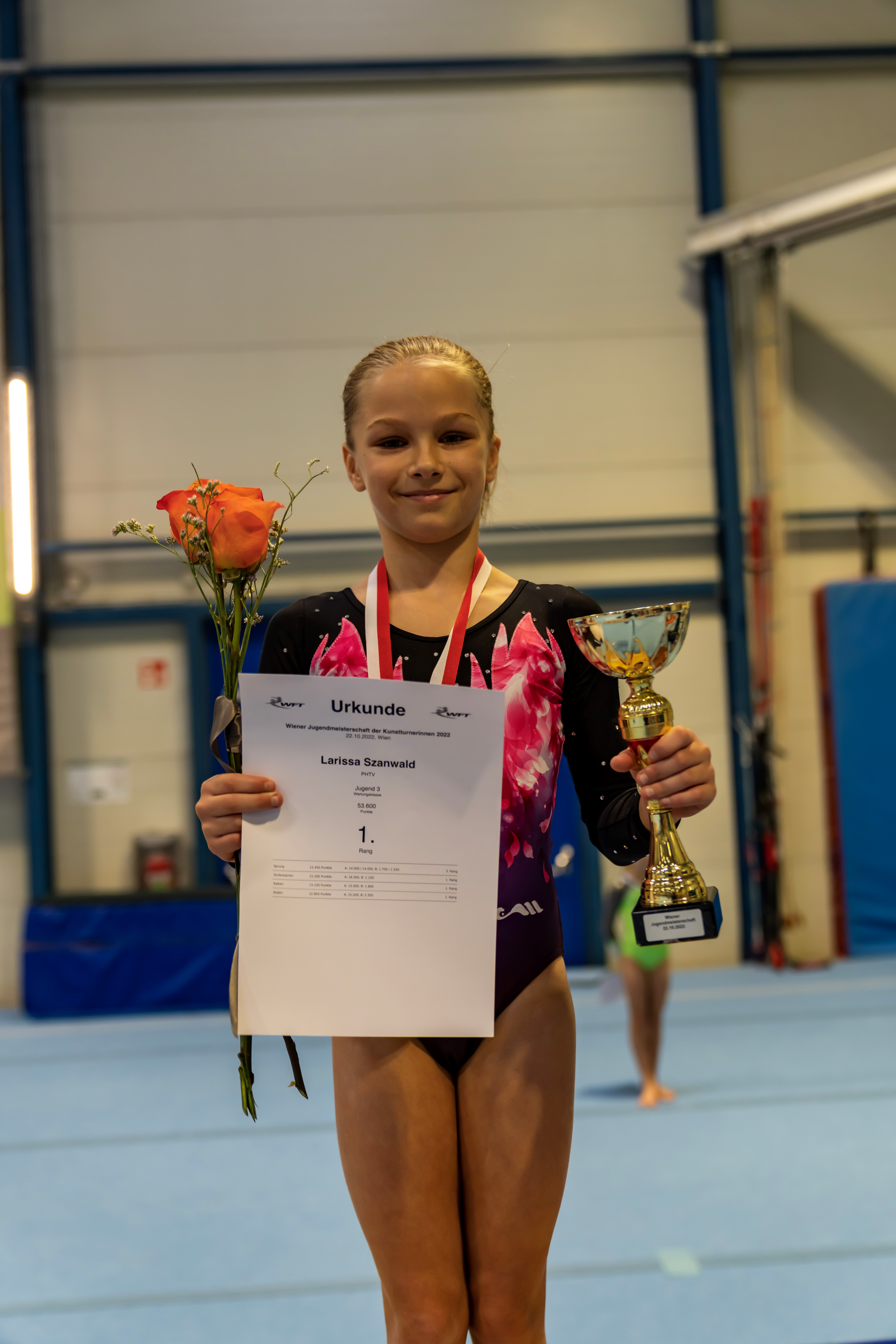 Tolle Erfolge für Larissa Szanwald (1U): Am 08.10.2022 holt sie den 1.Platz beim Wiener Jugendcup der Kunstturnerinnen 2022 und am 22.10.2022 wird sie 1. bei den Wiener Jugendmeisterschaften der Kunstturnerinnen 2022 und ist somit Wiener Landesmeisterin (Jugend 3).