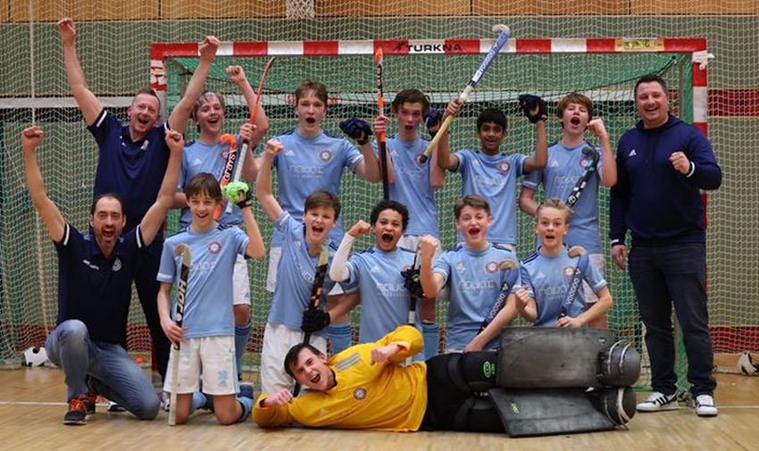 Österreichischer Staatsmeistertitel U14m für Leopold Breitmeyer (4U) und Noah Prinz Alves (3U) mit ihrer Mannschaft AHTC im Hallenhockey!