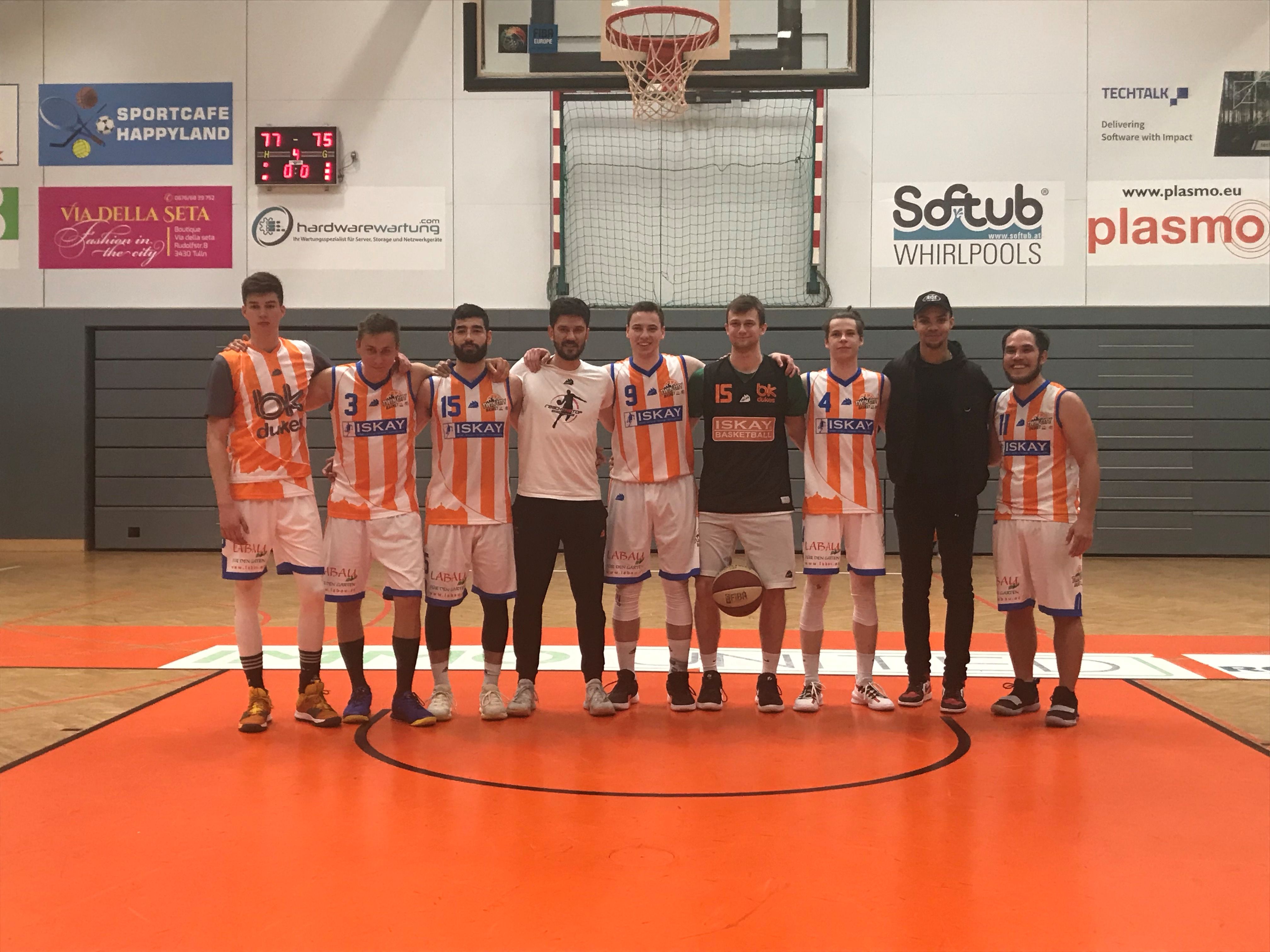 Die TwinCityBaskets sind NÖ CUP Sieger 2019 in der Landesliga NÖ. Diese Mannschaft ist eine Spielgemeinschaft Klosterneuburg und Korneuburg und dient den jungen BBLZ/AHWW /SLSZ Schülern dazu Praxis in der Erwachsenenliga zu sammeln. Gestern gewannen sie zusätzlich das zweite Spiel in der best of three Serie gegen die routinierten 6ers Klosterneuburg (aktueller Meister) und stehen im Finale der Landesliga NÖ 2018/19. Die drei Spieler der AHS Wien West/SLSZ sind: Links Maxi Girschik (8S), Nr 4 Mio König (7S), daneben der aktuell verletzte Nikhil Sacher (8O).